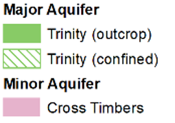 The Trinity Aquifer is a major aquifer located in Central and North Texas. The Trinity Aquifer is composed of 3 water bearing layers within the boundaries of the Middle Trinity Groundwater District. These layers are the Upper Trinity (Antlers, Paluxy, Upper Glen Rose), Middle Trinity (Lower Glen Rose, Hensell, Pearsall), and Lower Trinity (Hosston). Other water bearing formations in the District are Alluvium, and various formations within the Cross Timbers minor aquifer.